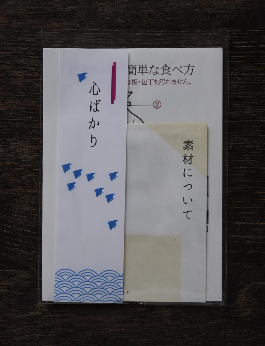 季節の葉を添えて、美味しく召し上がっていただけるよう素材やレシピをお入れしています。